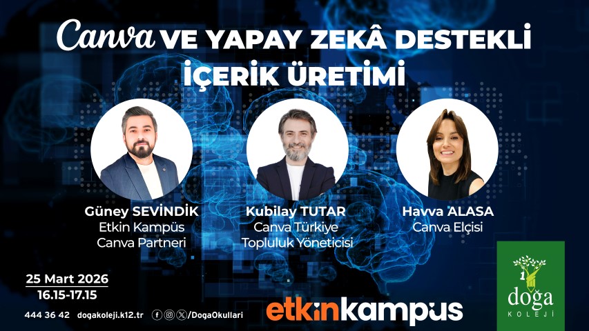 “Yarının Eğitimi Seninle Başlar: Yapay Zekâ ile Güçlenen Öğretmen” programı ile öğretmenlerin yapay zekâyı pedagojik, etik ve bilinçli bir şekilde kullanmalarını destekleyen, yenilikçi ve inovatif bir gelişim süreci başlatıldı. 23–24–25–28 Mart 2026 tarihlerinde gerçekleştirilen oturumlarda yapay zekâ okuryazarlığı ve öğretmenin dönüştürücü rolü ele alınırken; Canva iş birliği ile öğretmenler yapay zekâ destekli içerik üretimini doğrudan deneyimledi.